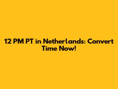 - Add the time difference to 12 PM PT: Add 9 hours to 12 PM PT to get the time in the Netherlands.