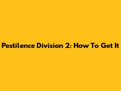 Pestilence Division 2: How To Get It