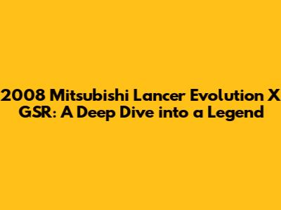 Hey car enthusiasts, gearheads, and Evo fanatics! Ever wanted to know everything about the 2008 Mitsubishi Lancer Evolution X GSR? Well, buckle up, because we're about to dive deep into what makes this car a legend. From its heart-pounding engine to its rally-bred heritage, we'll explore every nook and cranny. So, grab your favorite beverage, get comfy, and let's unravel the story of the Evo X GSR!