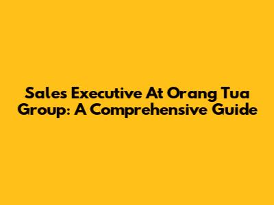 Sales Executive At Orang Tua Group: A Comprehensive Guide