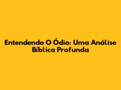 Entendendo O Ódio: Uma Análise Bíblica Profunda