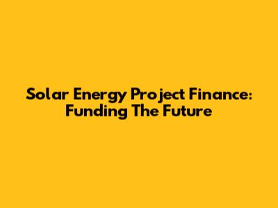 Solar Energy Project Finance: Funding The Future
