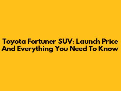 Toyota Fortuner SUV: Launch Price And Everything You Need To Know