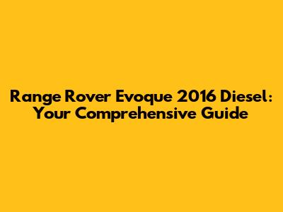 Range Rover Evoque 2016 Diesel: Your Comprehensive Guide