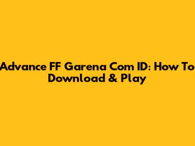 Advance FF Garena Com ID: How To Download & Play