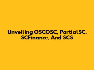 Unveiling OSCOSC, PartialSC, SCFinance, And SCS