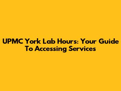 UPMC York Lab Hours: Your Guide To Accessing Services