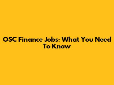 OSC Finance Jobs: What You Need To Know