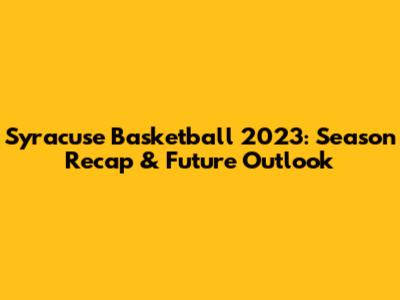 Syracuse Basketball 2023: Season Recap & Future Outlook