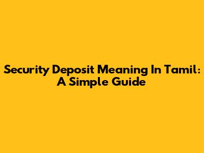 Security Deposit Meaning In Tamil: A Simple Guide