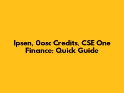 Ipsen, 0osc Credits, CSE One Finance: Quick Guide