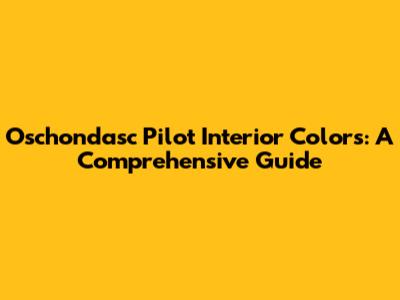 Choosing the right interior colors for your Oschondasc Pilot is a personal decision that should reflect your individual style and preferences. By understanding the available color options, considering the psychology of color, and following the tips outlined in this guide, you can create a space that you love and that enhances your driving experience. So, take your time, explore your options, and don't be afraid to experiment until you find the perfect combination. With a little planning and effort, you can transform your Oschondasc Pilot into a personalized haven on wheels.