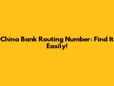 China Bank Routing Number: Find It Easily!