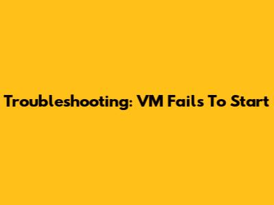 Troubleshooting: VM Fails To Start