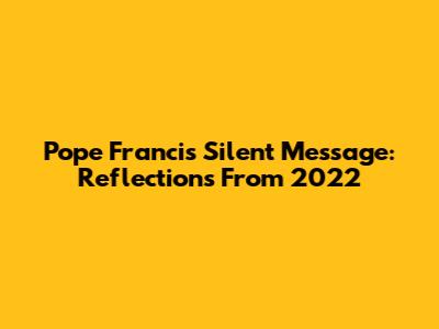 Pope Francis' Silent Message: Reflections From 2022