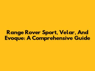 Range Rover Sport, Velar, And Evoque: A Comprehensive Guide