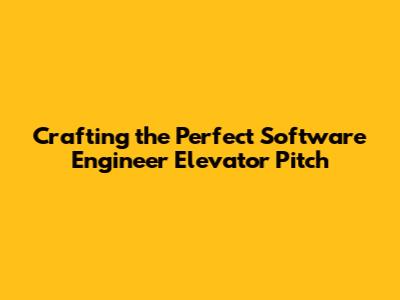 Hey guys! Ever been stuck in an elevator with a potential employer or investor and wished you had a killer pitch ready? As a software engineer, having a concise and compelling elevator pitch is crucial. It's your chance to make a lasting impression in a short amount of time. This guide will walk you through crafting the perfect software engineer elevator pitch, ensuring you're always ready to seize those unexpected opportunities.