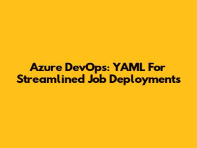 Azure DevOps: YAML For Streamlined Job Deployments