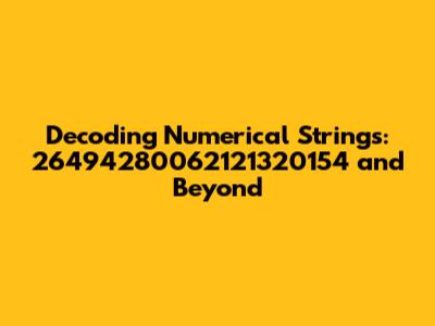 \nEver stumbled upon a seemingly random string of numbers like 26494280062121320154 and wondered what it could possibly mean? You're not alone! Numerical strings pop up everywhere, from serial numbers and account identifiers to encrypted messages and even just plain old random data. Understanding how to approach these strings can unlock valuable information or simply satisfy your curiosity. In this article, we'll dive deep into the world of numerical strings, exploring different methods to decode them, identify their potential sources, and even create our own. Whether you're a seasoned codebreaker or just a curious newbie, get ready to unravel the mysteries hidden within those digits.