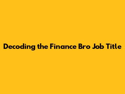 Hey guys! Ever scrolled through LinkedIn or heard whispers in the office about a "finance bro" job? It’s a term that pops up a lot, often with a mix of humor, skepticism, and maybe even a little envy. But what does it actually mean? Is it a real job title, or just a stereotype? Let's dive deep into the world of finance and unpack this popular, albeit informal, label. We're going to break down what these roles typically entail, the skills you need, and whether it's a career path worth considering. Forget the stuffy stereotypes for a moment; we’re going to give you the lowdown on the reality behind the "finance bro" mystique. This isn't just about understanding a catchy phrase; it's about exploring a significant segment of the financial industry and the diverse opportunities within it. So, grab your coffee, and let's get started on unraveling this enigma.