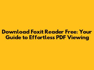 Hey guys! Ever found yourself wrestling with PDFs, wishing there was an easier way to view, annotate, and manage them? Well, guess what? You're in luck! Foxit Reader is a fantastic, free PDF reader that makes working with PDFs a breeze. In this article, we'll dive deep into everything you need to know about downloading Foxit Reader for free, so you can ditch those PDF headaches and get back to what matters. We'll cover where to download it, how to install it, and even some of the cool features that make Foxit Reader stand out from the crowd. So, whether you're a student, a professional, or just someone who deals with PDFs now and then, stick around. Trust me, it's worth it! Let's get started and make your PDF experience a whole lot smoother. Are you ready to dive in?