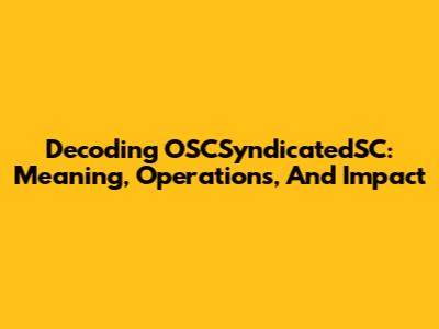 Decoding OSCSyndicatedSC: Meaning, Operations, And Impact