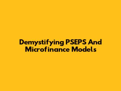 Demystifying PSEPS And Microfinance Models