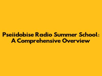 Pseiidobise Radio Summer School: A Comprehensive Overview