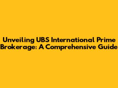 Unveiling UBS International Prime Brokerage: A Comprehensive Guide