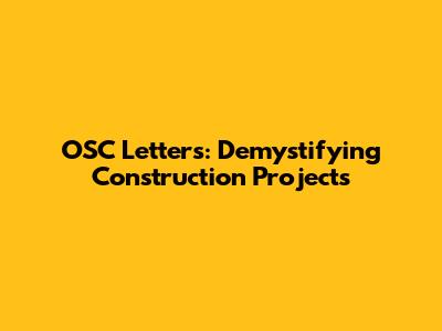 OSC Letters: Demystifying Construction Projects