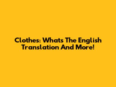 Clothes: What's The English Translation And More!