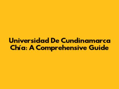 Universidad De Cundinamarca Chía: A Comprehensive Guide