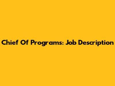 Chief Of Programs: Job Description