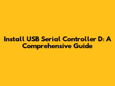 Install USB Serial Controller D: A Comprehensive Guide