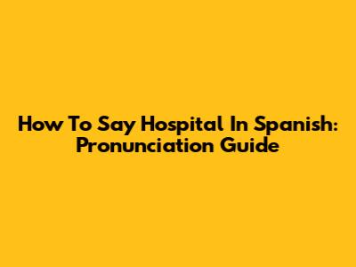 How To Say Hospital In Spanish: Pronunciation Guide