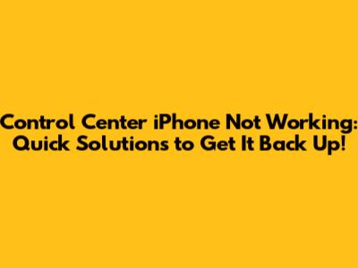 Why is My Control Center Not Working?