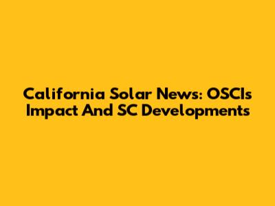 California Solar News: OSCI's Impact And SC Developments