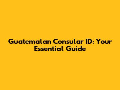Hey guys! Ever wondered about getting a Guatemalan Consular ID? If you're a Guatemalan citizen living abroad, it's a super important document. It's like having a little piece of home with you, right? This article is your go-to guide for everything you need to know about the Guatemalan Consular ID. We'll dive into what it is, why you need it, who can get one, the required documents, the application process, and even some helpful tips to make the whole thing smooth sailing. Getting your Consular ID doesn't have to be a headache. Let's break it down and make it easy! So, grab a coffee, and let's get started. We'll cover everything from the nitty-gritty of the identification consular Guatemala to the little details that can make a big difference. Ready to get informed and empowered? Let's go!