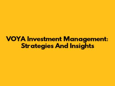 VOYA Investment Management: Strategies And Insights