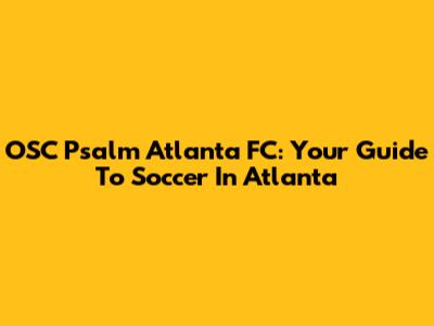OSC Psalm Atlanta FC: Your Guide To Soccer In Atlanta