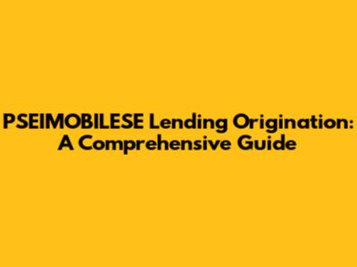 PSEIMOBILESE Lending Origination: A Comprehensive Guide