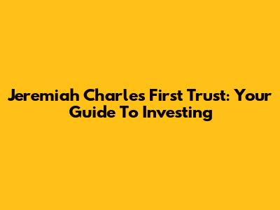 Jeremiah Charles First Trust: Your Guide To Investing
