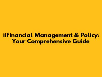 Hey guys! Let's dive into the world of iifinancial management and policy. It’s super important stuff, whether you're a seasoned investor, a small business owner, or just someone trying to get a handle on their personal finances. This guide breaks down everything you need to know, from the basics to some more advanced concepts. Think of it as your go-to resource for making smart financial decisions and navigating the ever-changing landscape of money and its management.