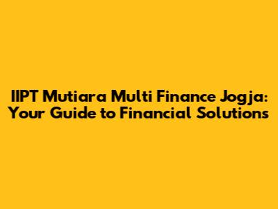 Hey guys! Are you looking for reliable financial solutions in Jogja? Let's dive into IIPT Mutiara Multi Finance Jogja, a place that might just have what you need. This article will cover everything from what IIPT Mutiara Multi Finance is all about to the specific services they offer and how to get in touch with them. Let's get started!