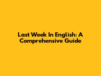 Last Week In English: A Comprehensive Guide