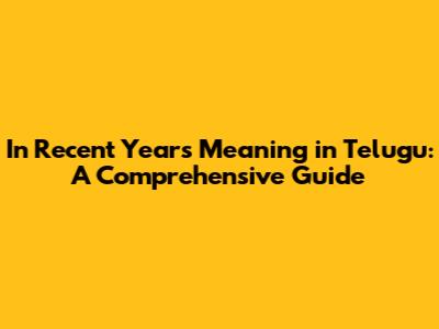 Common Telugu Translations of "In Recent Years"