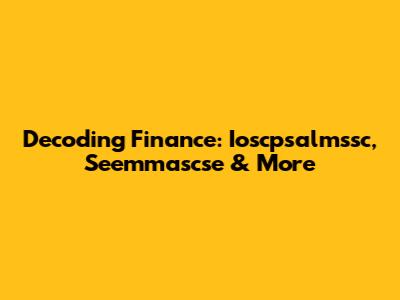 Decoding Finance: Ioscpsalmssc, Seemmascse & More