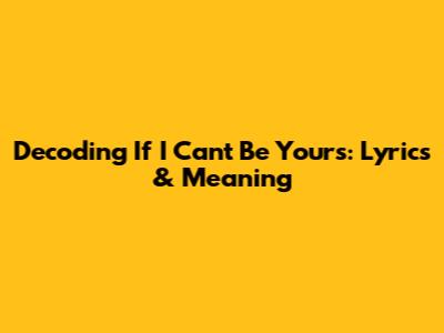 Decoding 'If I Can't Be Yours': Lyrics & Meaning