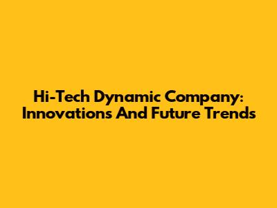 Hi-Tech Dynamic Company: Innovations And Future Trends