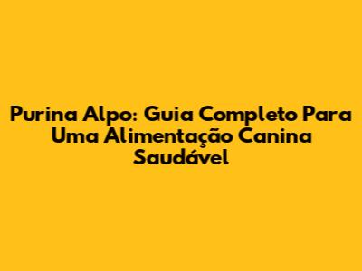 Purina Alpo: Guia Completo Para Uma Alimentação Canina Saudável